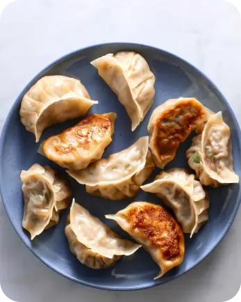 Enjoy fried dumplings, tempura shrimp, seaweed salad.